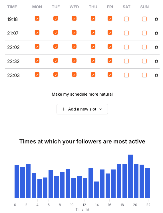 WriteStack fixes that completely. Not only that, it lets you create your schedules based on when your followers are most active!