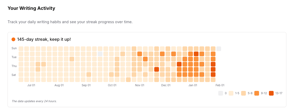 There’s also a heatmap that shows your posting streak so you can actually see your consistency over time.